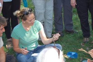 Terra Bach handles a snake during Master Naturalist Training.